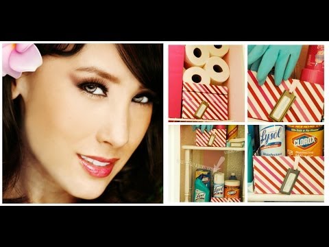 Above, you can see what I store inside the large pink canvas tote box at the top of the shelf. Just my bulky cleaners are stored here, I already had this tote and re-purposed it here. (Click image to enlarge)